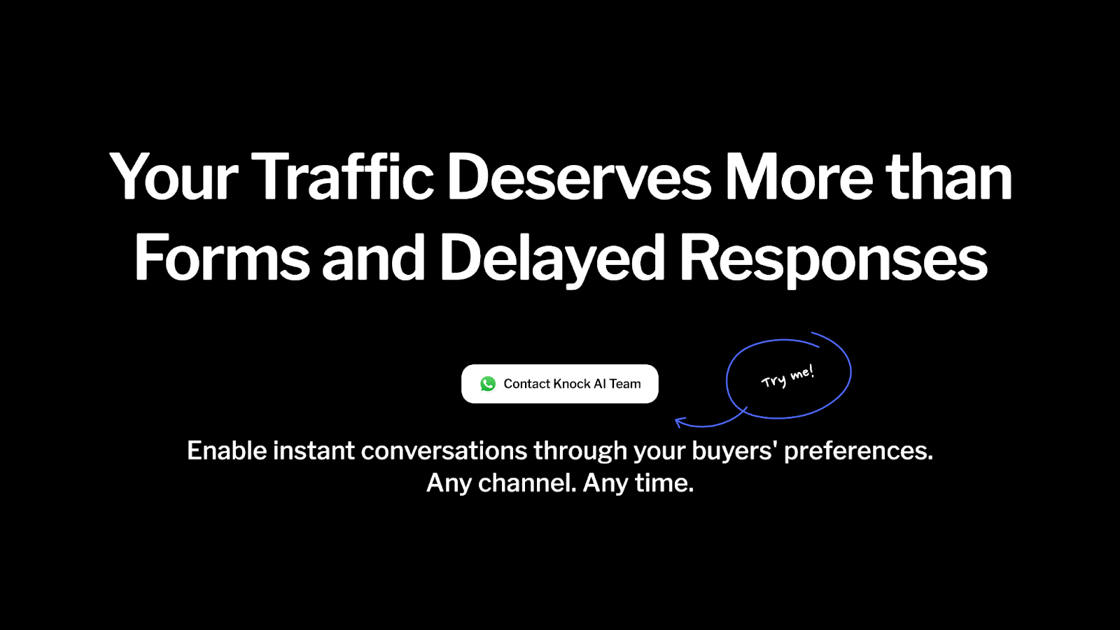Knock AI is a messaging-first AI SDR that engages and qualifies inbound leads instantly across channels like LinkedIn, Slack, and WhatsApp. Instead of relying on forms or delayed follow-ups, it detects buyer intent in real time, enriches lead data, routes conversations, and books meetings automatically, helping teams convert high-intent demand without friction.