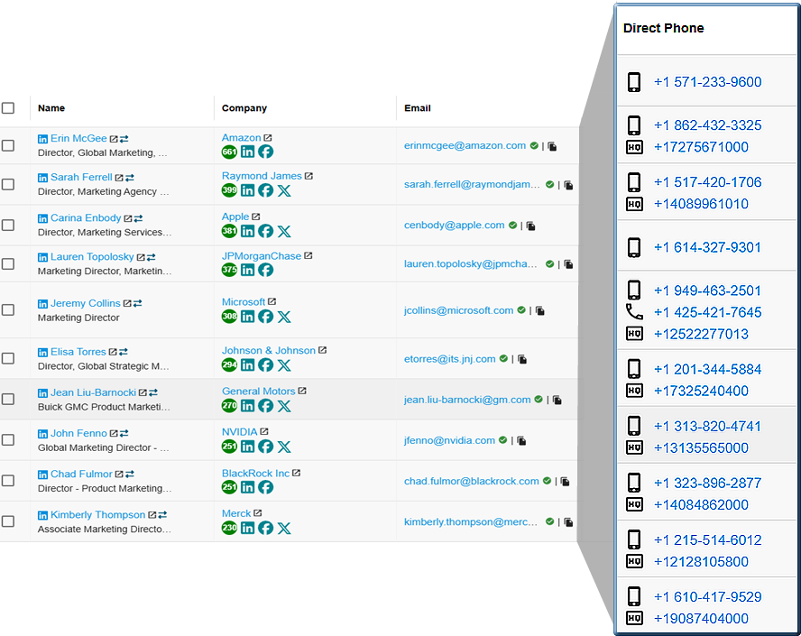 Lead411 provides the most accurate B2B Direct Dials to enhance outreach efforts. Whether you want to reach your prospects directly on their cell phone or send them a text, Lead411’s B2B Direct Dials can boost your connection rates.