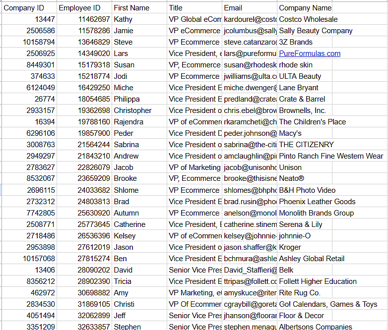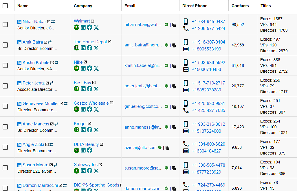 • Verified emails and direct dials for decision-makers in retail/e-commerce firms
